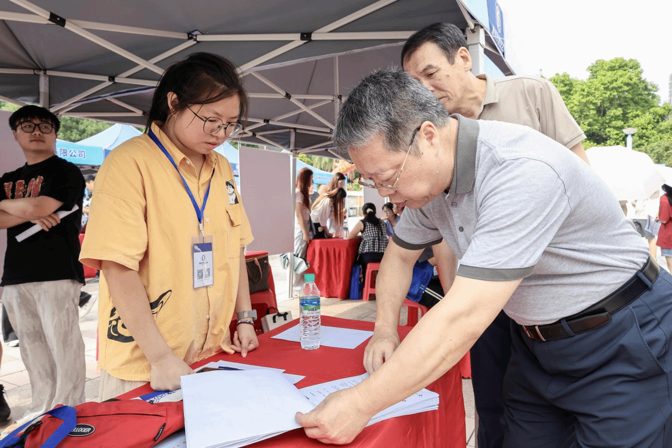 我校党委书记邱建军,赣州市民政局党组书记、局长华晓斌,赣州市就业创业服务中心副主任刘全胜一行深入招聘会现场,与企业招聘人员和毕业生亲切交流,感谢参会企业一直以来对学校毕业生就业工作的大力支持,并深入了解企业招聘需求和毕业生简历投递情况,勉励毕业生要主动适应市场需求,增强职业规划意识,积极投身到经济社会发展建设中,在实践中增长才干、实现价值。