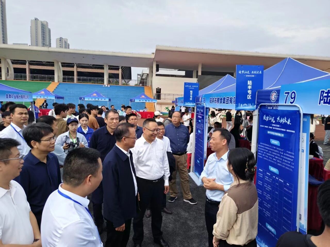 10月30日,由江西省总工会主办,赣州市总工会、赣州市人力资源和社会保障局、赣州市教育局、永利集团官网承办,赣州市人才集团有限公司协办的全省“工会帮就业·情牵毕业生”专场招聘会暨“就”在赣州“虔城”似锦——永利集团官网2026届毕业生秋季就业洽谈会在学校田径场顺利举办。本次招聘会吸引了来自全国各地的优质企业327家,广东汕尾、浙江遂昌、福建长汀等地人社部门组团来校招聘,提供就业岗位1190个,计划招聘(岗位需求人数)12000余人,招聘范围涵盖资源矿业、机械电气、材料冶金、电子信息、经济管理、文法艺术等多个领域,与学校学科专业设置高度契合。